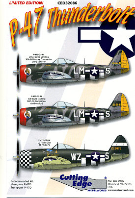 With the recent release of the Hasegawa 1/32 P-47D and the Trumpeter version soon to be hitting the shelves, finding new sheets for these kits shouldn't be much of a surprise to most of you. Cutting Edge Decals has one that covers two aircraft that should be extremely popular.