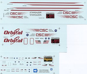 These decals are an addition to Cutting Edge's series devoted to things NASA and space. This time they have done markings for the Pegasus (which CE makes in resin) and its L.1011 launch vehicle. The Pegasus has three different variants on its markings and there are four different marking variants for the L.1011.