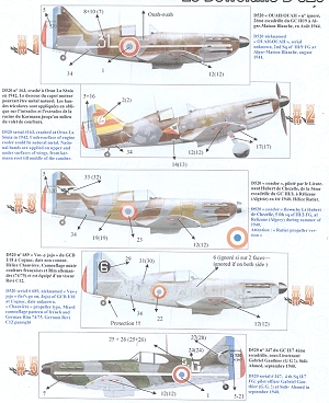 #1 is a GC III/9 aircraft from 1944 This has what looks like early Vichy markings with a white surround insignia and fuselage bar. As with all these markings, the rudder tricolor needs to be painted.