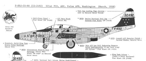 Finally, from the 321st FIS at Paine AFB in Washington is this F-89J with a light sky blue area under the stab with yellow stars.