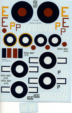 As the profiles are included in the 'Dutch in the FAA' book, only the lower wing placement guide is provided on the sheet. This is not really a problem as the FAA was pretty slavish as to just where markings were placed on their planes. There are sufficient markings to do two planes if one chooses wisely. The decals are superbly printed by Decalprint in the Netherlands. A nice touch is that those yellow surround letters are printed separately to prevent registration issues.