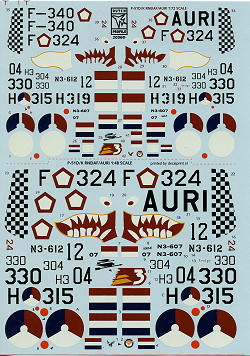 To go along with their book on the subject, Dutch Profile Decals has released this sheet on post war NEIAF/AURI P-51D/K Mustangs. All of these aircraft are in overall bare metal with OD anti-glare panels.