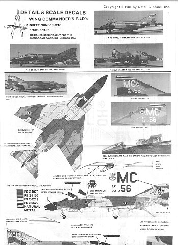 contains markings for three Wing Commander F-4Ds. The aircraft are all from the