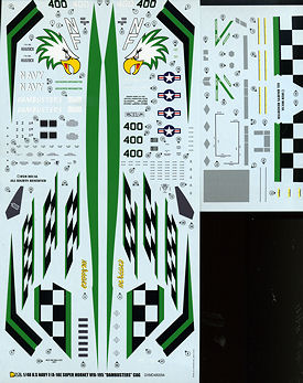 This set includes all the markings you will need to duplicate this aircraft in 1/48 scale. I am not up to speed as to who all does an F-18E in this scale but I know that Revell-Monogram does one and would be surprised if Hasegawa does not. Full color info is provided with several paint lines. This is not a small set as the main sheet barely fits on the platen of my scanner. The sheet itself is superbly printed by Cartograf so will work with all available setting solutions.