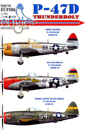 It has been six months since I've had the chance to review an Eagle Cals sheet, and their latest is on the P-47D Thunderbolt. There are some favorites on this sheet with one that I'm sure you will find that you want to do. This particular sheet is the 1/32 version for the Hasegawa kit. Others are in 1/48 and 1/72, and so will not look exactly like this one and probably have all the markings on a single sheet.