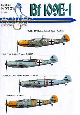 their second set of markings for the new Eduard 1/32 Bf-109E kit, Eagle Cals