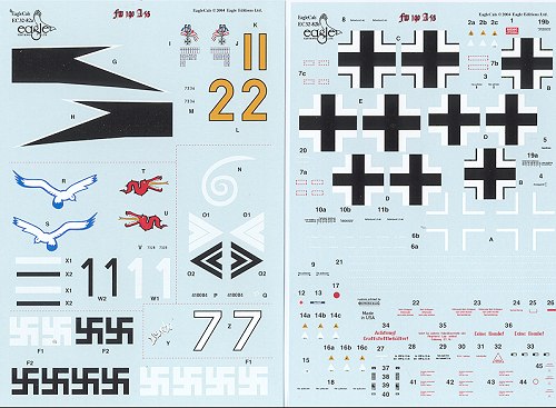 As is the norm nowadays, with the release of a new kit, there soon follows a bevy of aftermarket bits and pieces to help to either improve the kit or provide options not given with that kit. In this case, Eagle Cals has answered the need for different options in the form of the first of two new sheets dedicated to the Hasegawa 1/32 FW-190A-5.