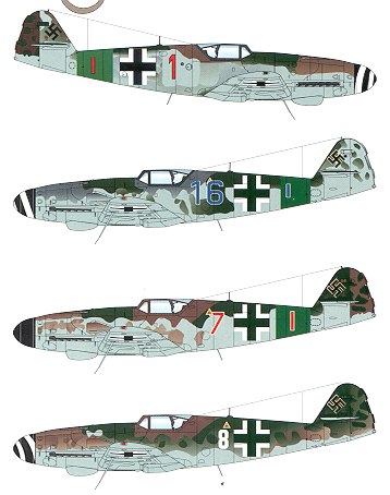 Finally white 8 from JG 52. This RLM 81/83/76 plane is not particularly colorful, but there are color photos of this plane on the back of the instruction sheet to help you along.