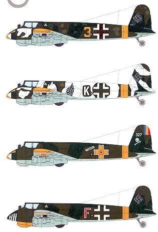First is Yellow 3 from PzSt./JG 51 in early 1943. Being attached to a Jagdgruppe, it has fighter codes, most unusual for a Hs-129. As with all the other 129s, it carries the Eastern Front tactical markings of yellow fuselage band, lower wing tips and nose.