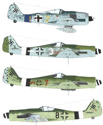 first of the JG 26 190D-9s. It is in RLM 82/83/76 with black and white RVD bands