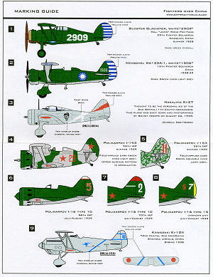 For the Japanese, there are two planes, both in overall Grey-Green. First is a Ki-27 of the 2nd Sentai, 11 Chutai commander in 1939. The other is a Ki-10 when based with the 72nd Chutai, 2nd HikoDaitai in early 1938.