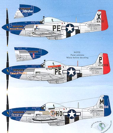 First on the sheet is PE*X 'Straw Boss 2' from the 328th FS. It has the requisite blue nose typical of this group and also the red rudder. It also has D-Day stripes that the builder will have to paint on, but in this scale that should be pretty easy. It also has black stripes on the underside of the horizontal stabilizers.