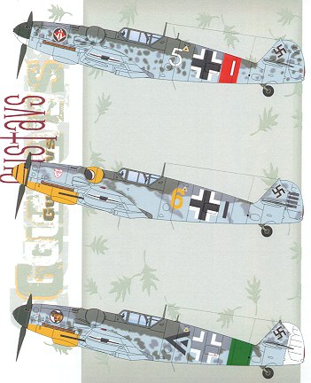All of the aircraft on this sheet are in the standard mid-war fighter camo scheme of RLM 74/75/76 with varying degrees of mottling.