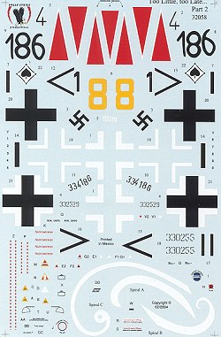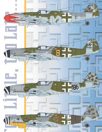 <1 is from III./JG 53 and has a yellow lower cowl along with its RLM 75/82/76 camo. The instructions say it may have been camouflaged in RLM 75/77 on the upper sides. Your choice on this one.
