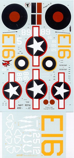 A TBM-1C from VT-7 aboard the USS Hancock is next. It and the remaining aircraft on the sheet has the tri-color paint schemes. The Hancock's tail symbol was a horseshoe