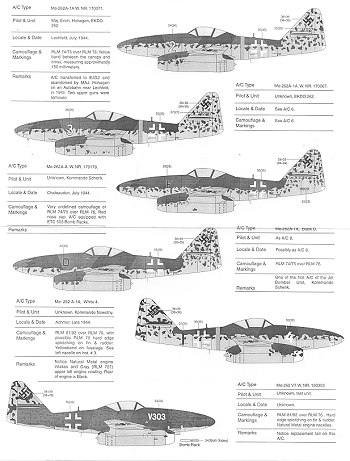 White 4 is from Kommando Nowotny and is in RLM 81/82/76 with the hard 'tadpole' fin/rudder camo.