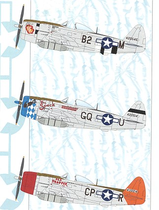 Finally, comes 'Ole Trapper' from the 366 FS/358 FG. This aircraft is fitted with the extended fin fillet, an orange tail and a red cowling, making for a most interesting and colorful aircraft.