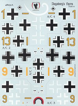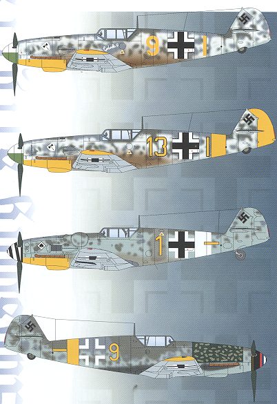Anyway, there are four aircraft on this sheet, all of them in varying degrees of the 'standard' scheme of the time; RLM 74/75/76 with varying degrees of mottling.