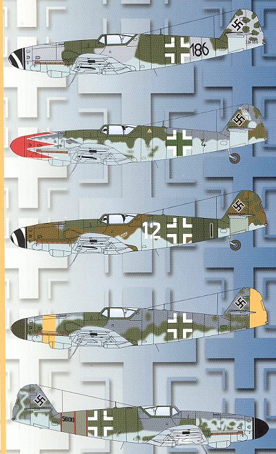White 12 is from 9./JG 3, complete with dark green or black Reich Defense band. Camo is in RLM 81/83/76.