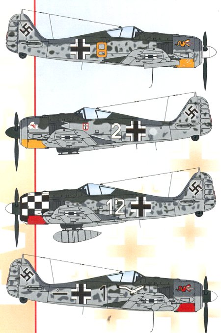 From 3./JG1 is White 12, a checkered cowling A-6. It has a red section under the cowling and a white spinner tip.