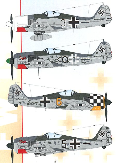 Next is an A-5 for II./JG1's gruppe technical officer. His aircraft also has a red lower cowling and is, like the other mottled planes, very lightly mottled on the fuselage side.