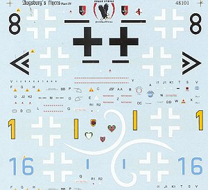 So you say you can't get enough 109 stuff? Well, here is another sheet for the ubiquitous Messerschmitt. This one contains a smattering of DB.605 powered variants, though most of them are in the standard scheme of RLM 74/75/76 with various matterns of mottling.