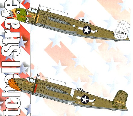 These are both B-25D-1s and are shown with individual ejector exhausts, but I'd double check the reference to make sure that this is correct as, to my knowledge, the only difference between a C and D were where they were built. Early Cs have collector exhaust and I don't doubt that the same goes for early Ds as well.
