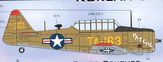 camouflaged AT-6D from the 6147 TACS in 1950 named 'Patches'. It is in OD