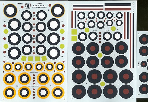 On the back of the cover sheet is a listing of which size roundels were used on which aircraft.