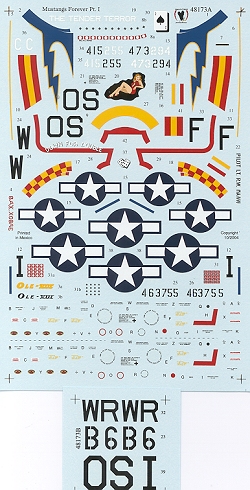 Finally, 'Down for Double' a rather well-known aircraft from the 354 FS/355 Fg. It has a white spinner and nose markings outlined in red, the same color as used on the rudder. The builder will have to paint on the white nose markings.