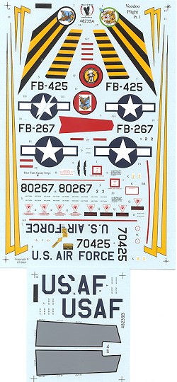 Insignia and common markings for one aircraft. The builder will have to paint the missile blast areas. Wing walk markings are provided as a decal.
