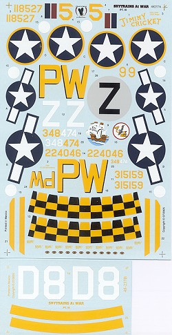 Next is a Normandy Invasion C-47A from the 94 TCS. It has large invasion stripes that the modeler will need to paint. This one has a nose art of a sailing ship and named 'Argonia' after the pilot's home town.