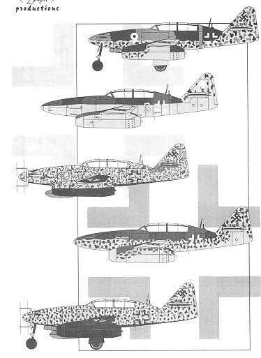 First is white 9 of III./EJG 2 in RLM 82/83 over 76 with RLM 82/83 mottling.