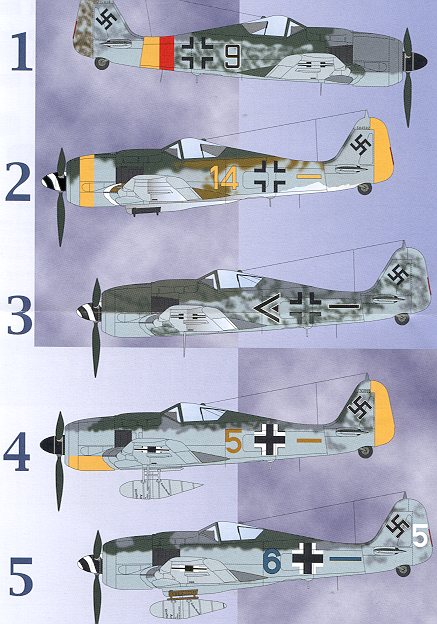 The third 190A-8 is from II./SG 2 in 74/75/76. It also has unpainted parts of the airframe. It is unusual that a ground attack unit would be flying a fighter version instead of the 190F-8/9.
