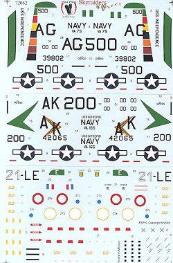 The first scheme is for the VA-75 CAG bird from the USS Independence. It has the standard light gull grey and white scheme with the color on the end of the rudder.