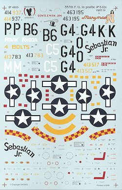 With its upper surface OD coloring and undersurface D-Day stripes, 'Sebastian Jr' from the 362 FS is a bit different from others on the sheet. It also has no dorsal fin extention.