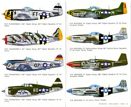 #7 is an early sheet so has a lot of what are now old favorites. In the P-47 line up is Glenn Eagleston's plane along with Gabby Gabreski and Robert Johnson's planes.