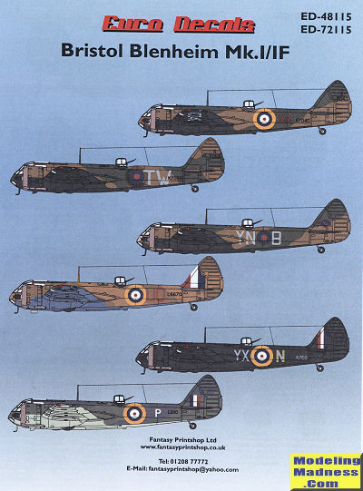 modeler has markings for six Blenheim I/IF aircraft. These are all prewar or