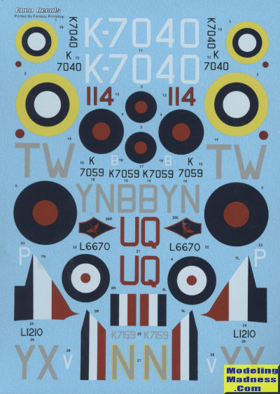 Undoubtedly spurred by the nearing release of the 1/48 Airfix kit, this sheet will be very useful for those who have the 1/72 version that was kitted several years back. These markings should also be something to consider if you have the ancient Frog kit as certainly those markings have lost their viability a long time ago.