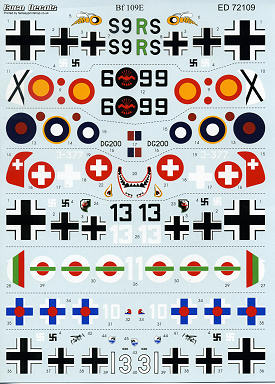 day I reviewed a nice 1/48 sheet on Bf-109Es from Euro Decals. This same sheet