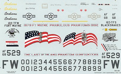 In the US, these markings are usually quite detailed and are best appreciated while on the ground (a place where a military aircraft spends 95% of its life anyway). This decal sheet is one of those types of markings, painted to commemorate the retirement of the last of the US Air National Guard F-4E Phantom IIs back in 1992.