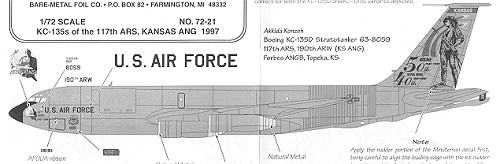 The main scheme is for the 50th anniversary of the USAF aircraft with the huge Minuteman on the tail. The other two schemes are for more 'normal' KC-135Es each with their own nose art.