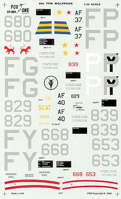 The sheet is scaled for the Tamiya 1/32 F-4C/D kit, which is purported to be in the Vietnam configuration. All the subjects on this sheet are in the South East Asia (SEA) scheme of FS 34079/34102/30219 over 36622. The set also includes two sets of insignia and common data markings, so you could do two of the subjects on the sheet if you choose wisely.