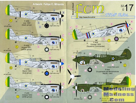 FCM concentrates their next 1/32 sheet on an aircraft that served in Brazil. In this case it is with the 1/14th Group of Aviation Squadron 'Pampa'. This unit is probably one of the longest serving P-40 units in the world, operating their planes until 1954, a remarkable longevity. Though not the only P-40 unit in Brazil, this unit at one time had up to 55 different aircraft.