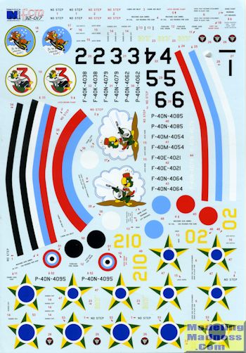 Kits are not an issue as Hasegawa has produced most of these variants during the long production run of the series. The sheet itself is superbly printed. Instructions are in full color and provide a complete data placement guide. If you are a P-40 fan and are looking for some different options for your display shelf, well this is a sheet for you.