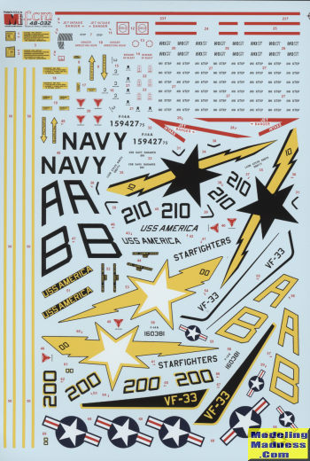 provides markings for two VF-33 'Starfighters' aircraft in 1/48 scale. VF-33 is