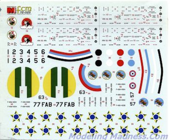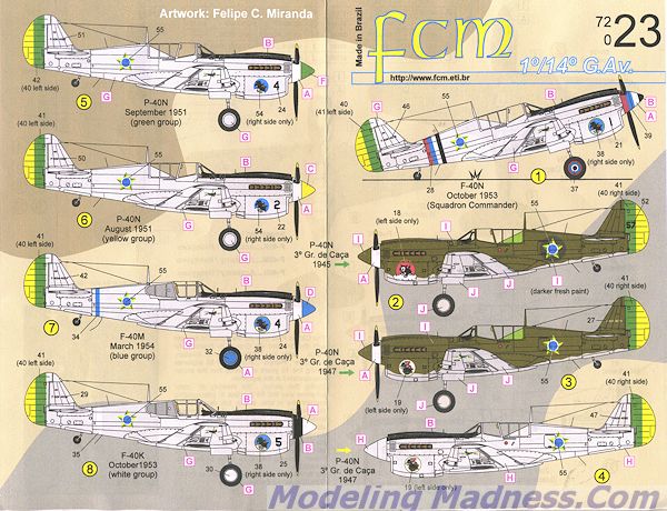 For their second P-40 sheet, FCM concentrates on the aircraft that served in Brazil. In this case it is with the 1/14th Group of Aviation Squadron 'Papa'. This unit is probably one of the longest serving P-40 units in the world, operating their planes until 1954, a remarkable longevity. Though not the only P-40 unit in Brazil, this one at one time had up to 55 different aircraft.