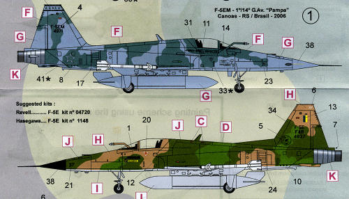 on to what is in the sheet. The top aircraft is an F-5EM from 1/14 G.AV 'Papas'