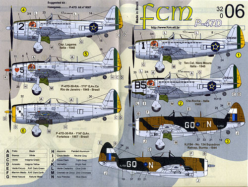 For those who like their P-47s to be super sized, FCM Decals offers this new sheet. It is not surprising that it would mostly contain Brazilian aircraft as Brazil was one of the Allied countries who flew the Thunderbolt in the last year of the war. Many of these planes went on to form units back in Brazil after the war years.