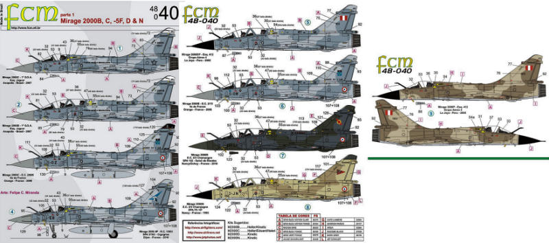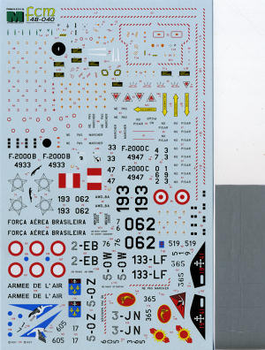 The French have been very good at selling warplanes to other nations. Probably because they will sell to anyone who is willing to pay. As a result, Mirage jets have done very well in the air arms of other nations, including a couple in South America. These aircraft don't get a lot of decal coverage, so it was nice to see the latest FCM sheet covering several of them. Basically, you get markings for nine aircraft and can do one from each country when you include the insignia options. Additional data markings can come from the kit decal sheet.